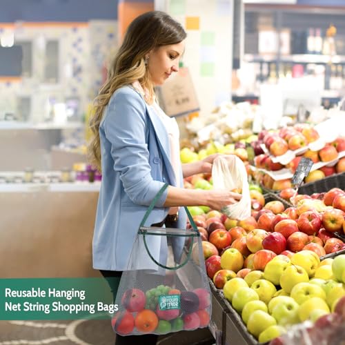 Minicoco - شنط تسوق شبكية معلقة من 3 قطع قابلة لاعادة الاستخدام للخضروات والفواكه والسلع والسفر والخروج، شنط شبكية محمولة للبقالة (اخضر)