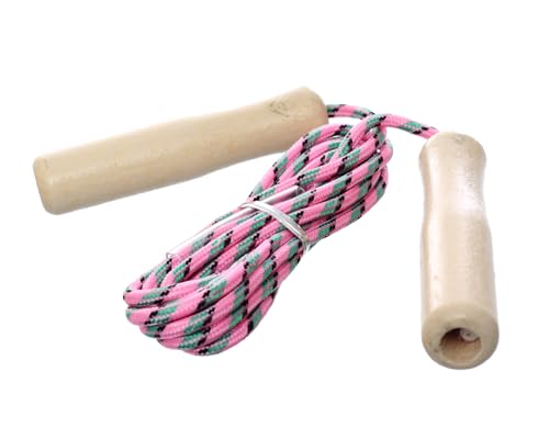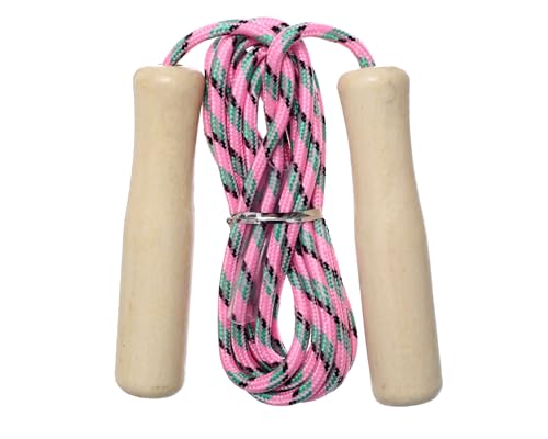 Minsa, - حبل قفز بمقبض خشبي لتدريب اللياقة البدنية والكارديو من مينسا، لون وردي، موديل M193