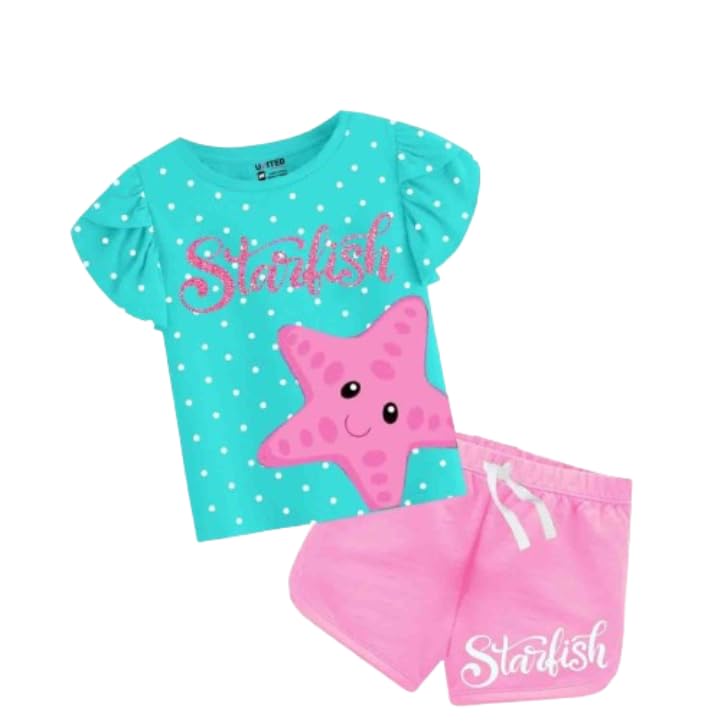 Generic - طقم بناتي تيشرت مينت جرين به رسمي وشورت بينك