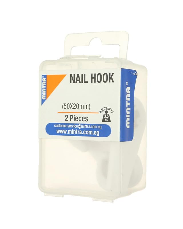 Mintra - مينترا شماعة خطافية لاصقة من قطعتين 94066 - ابيض، بلاستيك