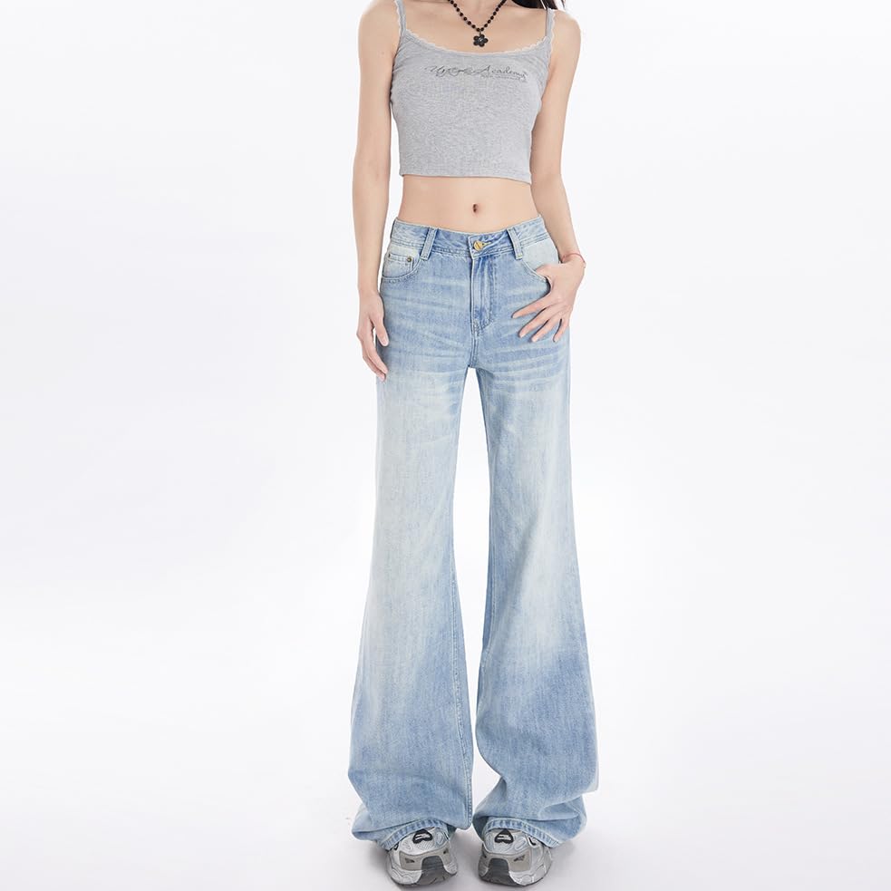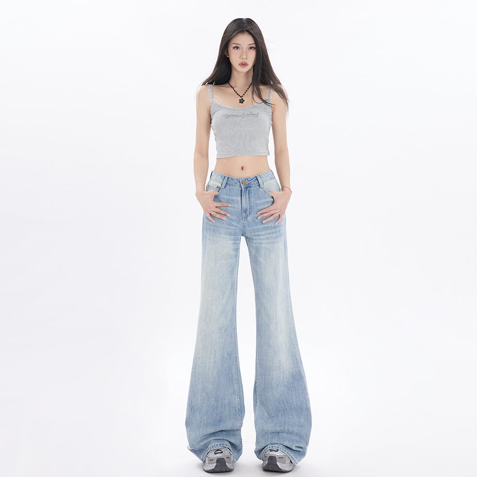 بنطلون جينز واسع الساق بتصميم وايد ليج عصري