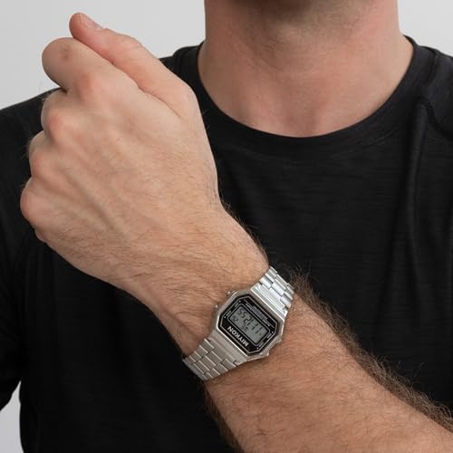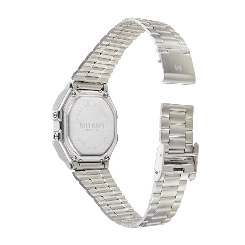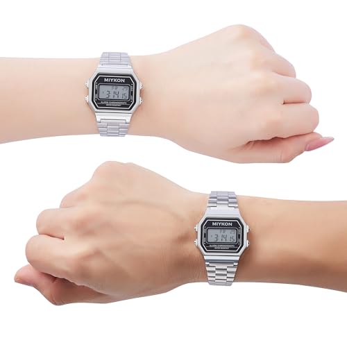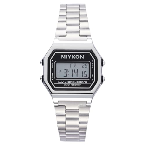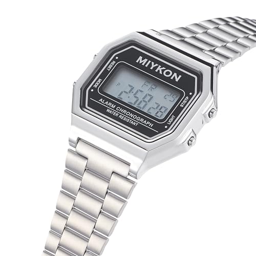 Miykon - ساعة رقمية من الفولاذ المقاوم للصدأ متعددة الوظائف بتصميم عتيق، ساعة كرونوغراف مع منبه يومي ومؤقت عد تنازلي ومؤقت الدورة ومنطقة زمنية مزدوجة وتقويم تلقائي مع عرض اليوم من ميكون