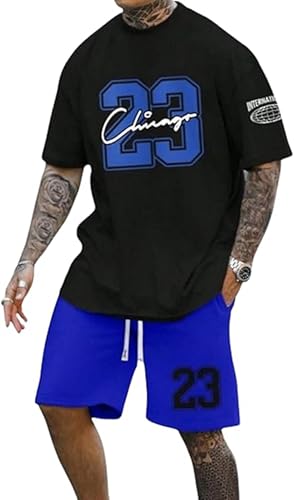 Meza - طقم رجالي رياضي كاجوال - تيشيرت مطبوع برقبة مستديرة + شورت قصير برباط، مريح وعصري للصيف للشباب والرجال من ميزة