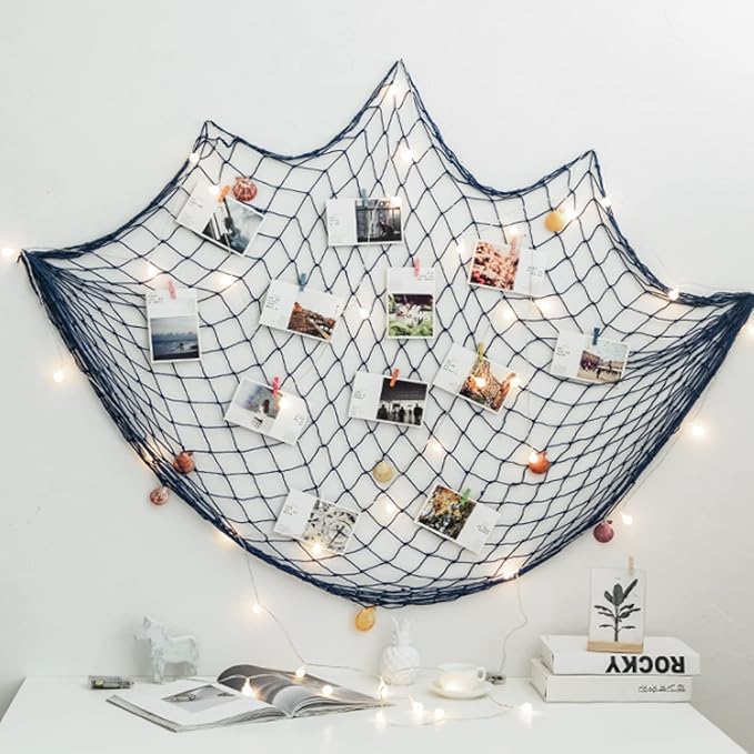 - [ديكور مميز]: يمكنك تعليق شبكة الصيد بالأسلوب الذي تختاره، ثم ضع صور المناظر الطبيعية أو البطاقات البريدية أو الزينة أو الهدايا التذكارية فيها.