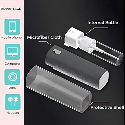 - يقدم هذا المنظف المحمول 2 في 1 حلاً عمليًا وفعالًا للحفاظ على نظافة شاشات أجهزتك. يجمع بين زجاجة 10 مل من بخاخ تنظيف مقاوم لبصمات الأصابع ومنديل مميز من الألياف الدقيقة قابل لإعادة الاستخدام، كلها في وحدة واحدة سهلة الاستخدام. يضمن لك التصميم المدمج أن يكون لديك دائمًا الأدوات اللازمة في متناول اليد لإزالة البقع وجزيئات الأوساخ وبصمات الأصابع الدهنية والغبار وعلامات البشرة الدهنية من الموبايلات والموبايلات السمارت وأجهزة التابلت وشاشات اللاب توب وما إلى ذلك