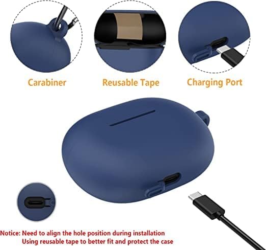 Mobilic - حافظة حماية ناعم من السيليكون مع حلقة تثبيت متوافق سماعات ريدمي بادز 3 لايت موبيليك باللون الازرق الغامق أحمر