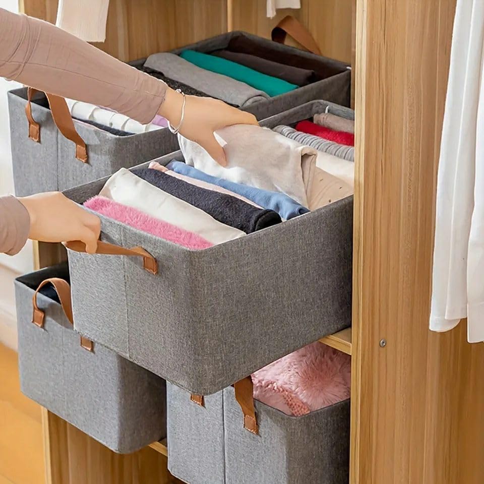 Generic - بوكس منظم الملابس والأالأغراض الدلوب الخامه الكتان تقيل بقوم معدن من الداخل (3 قطع فقط) واحصل عليه من ايجل شوب - igle shop..