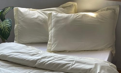 MonyHome - طقم ملايات سرير مسطحة بيركال من موني هوم، لون بيج، مقاس 2.40 × 1.80 متر