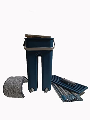 Spaceshoop - جردل شرشوبة بـ2 أحواض غسيل للشطف والعصر، مزود بـ2 قطعة بديلة من الألياف الدقيقة - أزرق