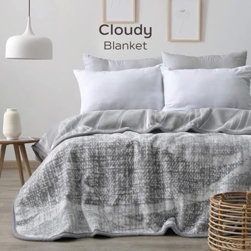 Generic - بطانية مورانو كلاود مصنوعة من البوليستر بلون كشمير مقاس 220 × 240 سم بتصميم مطبوع وجزء خلفي منقوش بلون رصاصي