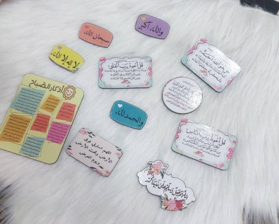• مجموعة تذكارات صباحية ومسائية خشبية مغناطيسية للثلاجة مصنوعة من مادة ممتازة