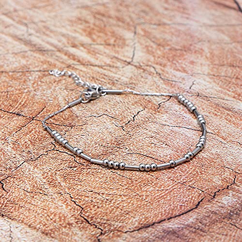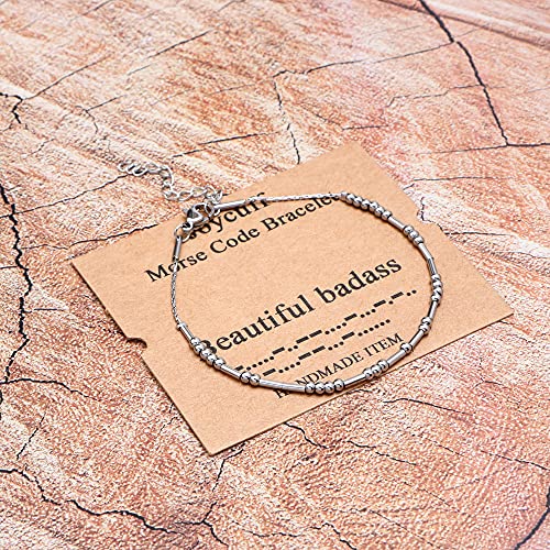 JoycuFF - اساور مورس كود للنساء والفتيات المراهقات هدايا مضحكة للام والابنة والاخت والصديقة المقربة، مجوهرات ملهمة من الحرير مطرز بالخرز سوار قابل للتعديل، 8 انش، معدن، غير معروف