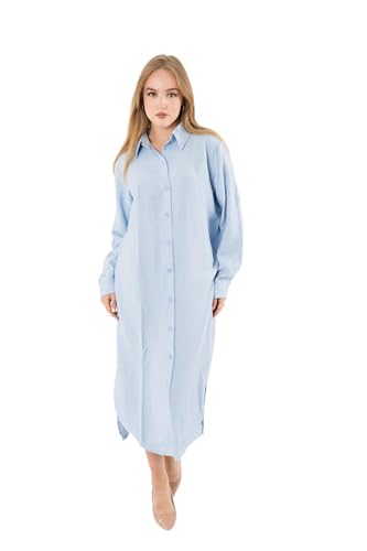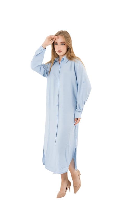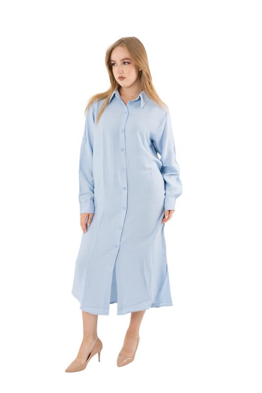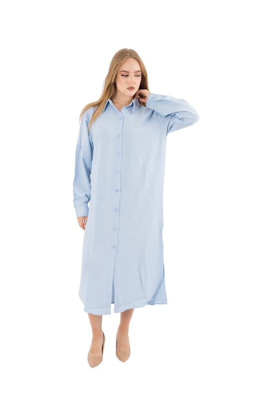 Mosca Women's Wear - فستان بتصميم قميص طويل من الكتان بأكمام طويلة كلاسيكية للنساء من موسكا