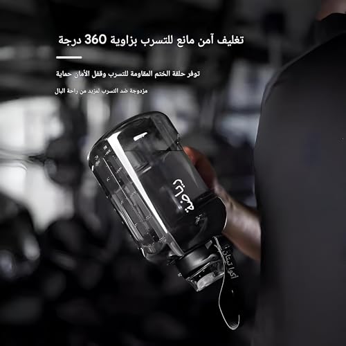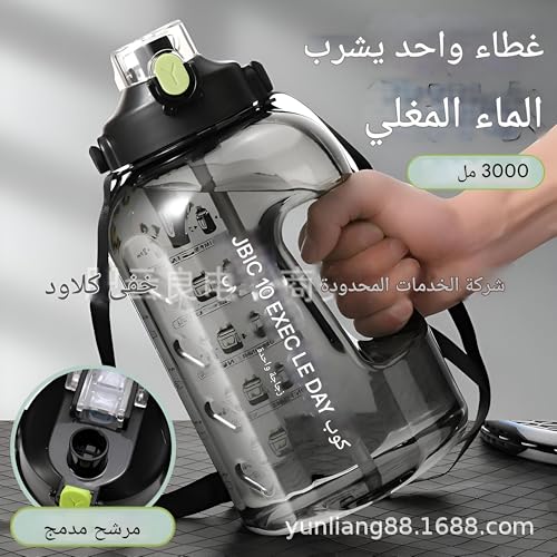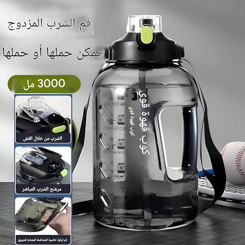 Generic - زجاجة مياه تحفيزية بعلامات زمنية مانعة للتسرب سعة 3 لتر بسعة كبيرة مصممة للاستخدام النشط والخارجي باللون الاسود
