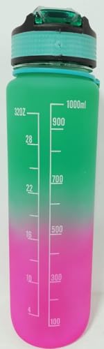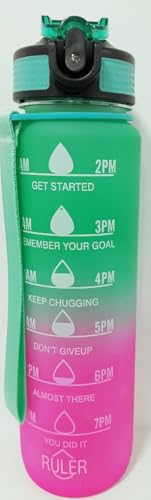 Generic - زجاجة مياه تحفيزية مع ماصة، مانعة للتسرب ، سعة 1 لتر مؤشر للوقت، شرب قابلة لاعادة الاستخدام للاطفال والكبار، بلاستيك بلون اخضر فى بينك
