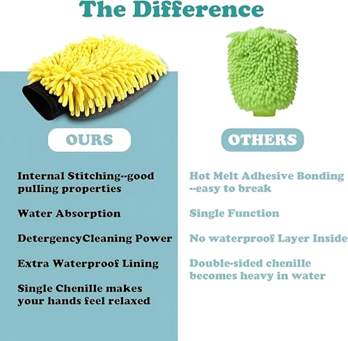 - مصنوع من خيط مايكروفايبر عالي الكثافة وممتص للماء ومادة شمواه ناعمة، يوفر القفاز مقاومة ممتازة للخدش ومقاومة للماء، مما يجعله مثاليًا للتنظيف الجاف أو الغسيل الرطب لمختلف أسطح السيارات والتفاصيل.