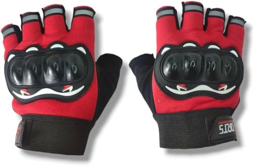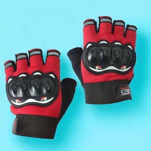 Generic - جوانتي بتصميم نصف إصبع للموتوسيكلات، مع حماية للمفاصل (أحمر)