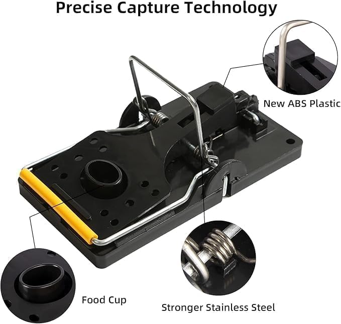 - مقاومة للصدأ وعديمة الرائحة: تقاوم مادة مصيدة الفئران البقع والروائح الموجودة عادة في المصائد الخشبية القديمة. تتميز المصيدة بعمر خدمة طويل ولا تترك روائح كريهة.