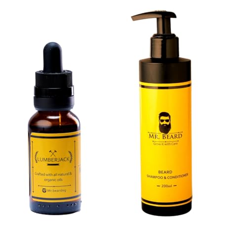 Mr. Beard - مجموعة شامبو اللحية وزيت اللحية للتنظيف العميق برائحة لامبرجاك من مستر بيرد مع شنطة