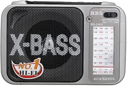 Generic - راديو متعدد النطاقات اكس-باس بصوت عميق وقابل لإعادة الشحن ومزود بمدخل تيار مستمر وسماعة أذن، فضي