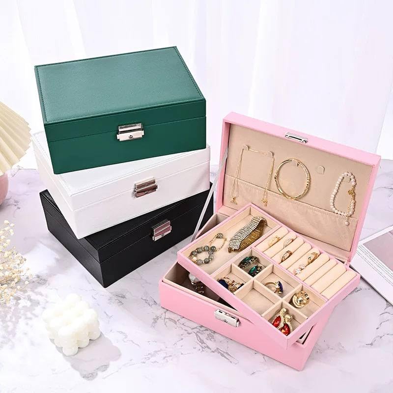 - تصميم متعدد الأدراج: يحتوي على أدراج وأقسام لتنظيم المجوهرات، الساعات، والقطع الصغيرة بشكل عملي.