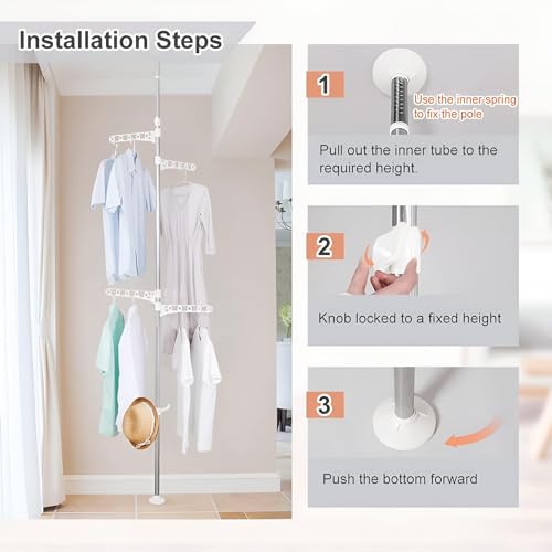 - تصميم شجرة متعدد الطبقات - تصميم شجرة متعدد الطبقات: عدة طبقات قابلة للتمدد مع خطافات متعددة لتعليق الملابس والمعاطف والقمصان - طبقات متعددة قابلة للتمدد مع خطافات لتعليق الملابس والمعاطف والقمصان بكفاءة