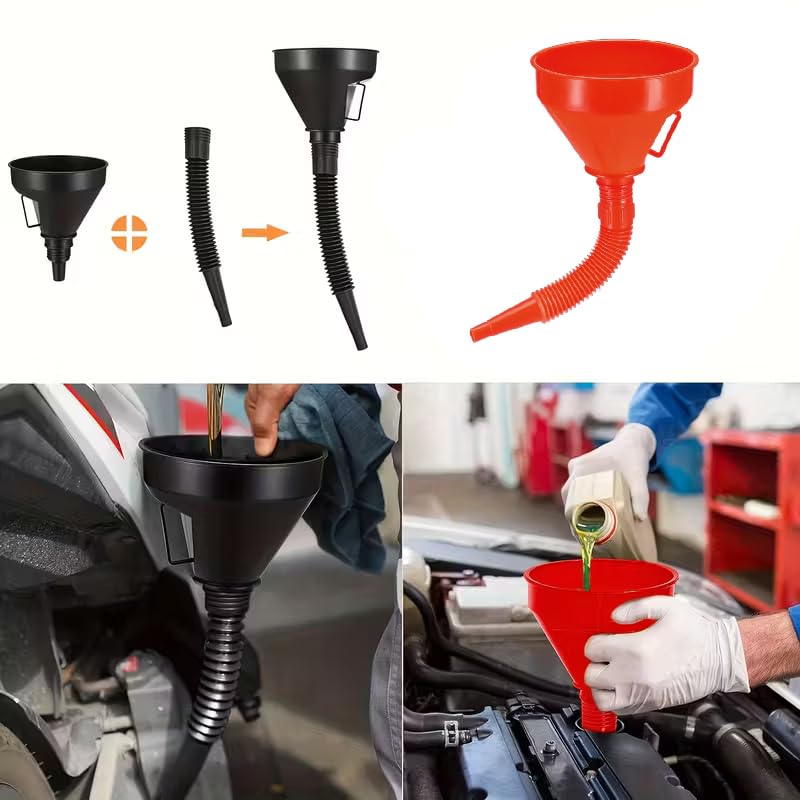 • ✅قمع زيت السيارة مناسب لتعبئة البنزين، قابل للفصل مناسب للملء بزوايا مختلفة، مما يجعل العملية أكثر ملاءمة.