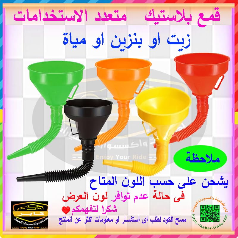 Generic - قمع بلاستيك متعدد الأغراض مع فوهة مرنة قابلة للتمدد( متعدد الالوان ، قطعة واحدة ، كود :9072) - من كابر تريد