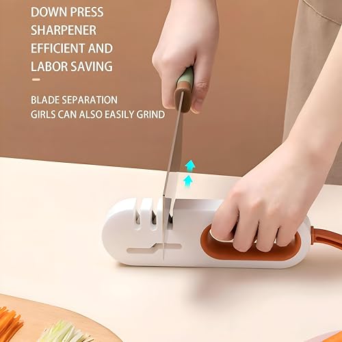 Daga - أداة شحذ متعددة الأغراض - مسن 4 في 1 من الفولاذ المقاوم للصدأ للسكاكين والمقصات وأدوات المائدة للمطبخ، نظام شحذ سريع من 3 مراحل، هيكل بلون برتقالي ساطع لرؤية عالية