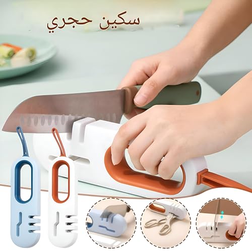 - نقدم مسن السكاكين متعدد الوظائف 4 في 1 المصنوع من الفولاذ المقاوم للصدأ والمقصات المنزلية؛ أداة متعددة الاستخدامات مصممة لسن المقص والسكاكين وأدوات المطبخ بسهولة.