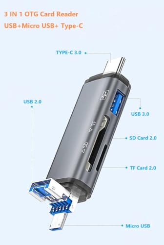 Multibao - قارئ بطاقات او تي جي متعدد الوظائف 3 في 1 يعمل بنظام اندرويد Micro USB ومحول بطاقة SD لنوع سي/اندرويد/الكمبيوتر الشخصي لقراءة بطاقات الذاكرة الخارجية لأجهزة اندرويد/الكمبيوتر/اللاب توب
