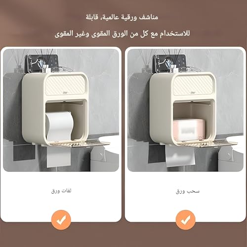 - المنتج عبارة عن صندوق تخزين مناديل متعدد الوظائف مثبت على الحائط يجمع بين موزع المناديل وحامل الهاتف وأدراج التخزين، مما يسمح للمستخدمين بتنظيم أساسيات الحمام بكفاءة والحفاظ على الأجهزة في متناول اليد مع الحفاظ على مساحة مرتبة.