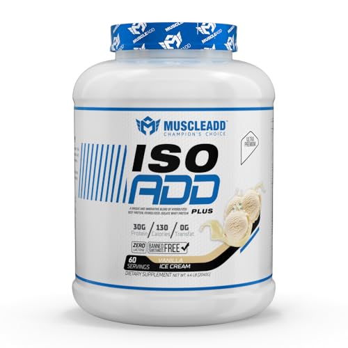 Muscle Add - بروتين ايزو اد بنكهة ايس كريم فانيليا يساعد على نمو عضلات اقوى واكبر مع كمية يومية كاملة بدون سكريات وقليل الدهون 135 سعر حراري 30 جرام 60 حصة غذائية 2160 من ماسل 2160.0 غرامات من ماسل ادد