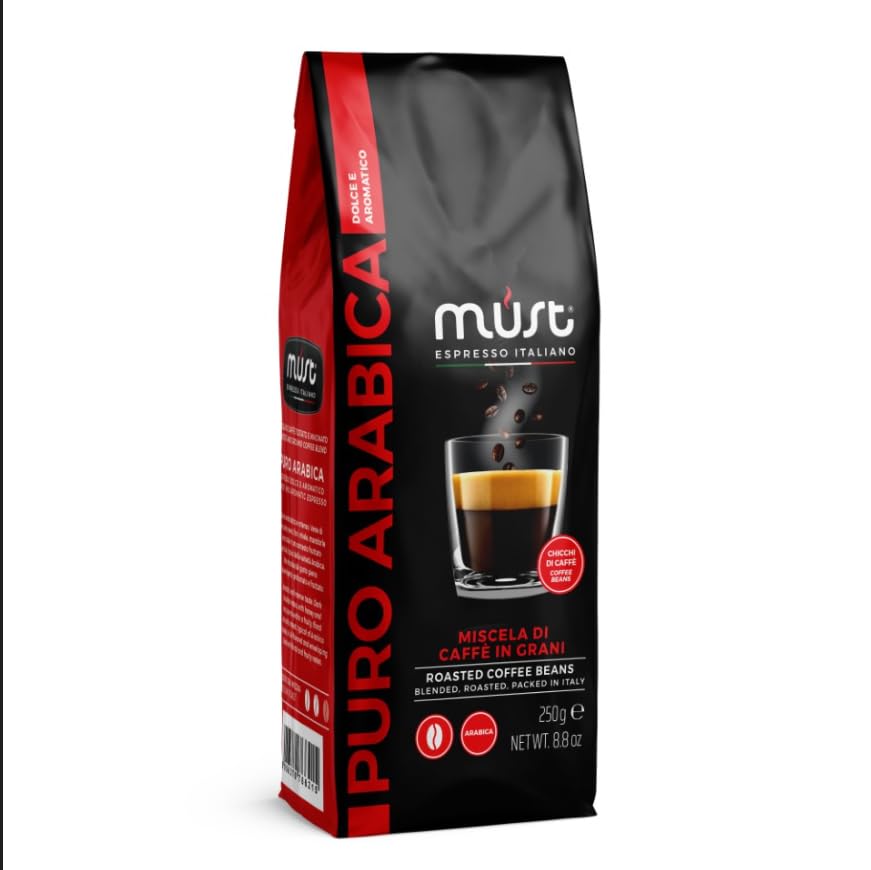 MUST - ماست - قهوة عربية نقية 100%، حبوب محمصة، عبوة 250 جرام، مناسبة للموكا، صنعت في إيطاليا