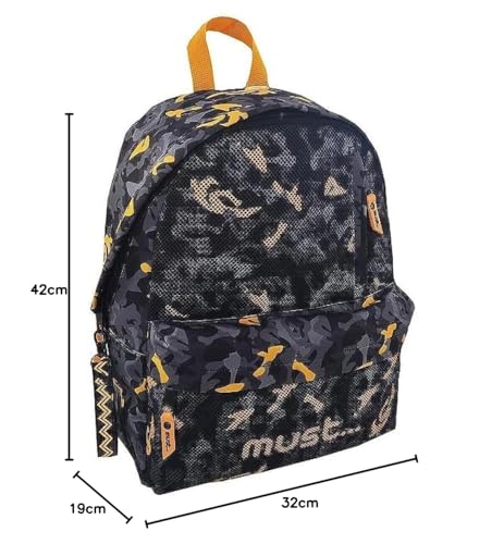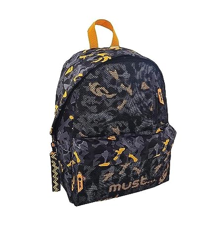 MUST - شنطة مونوكروم بنمط جيش وقماش شبكي من ماست لون اسود وبرتقالي، 4 قطع, متعدد الألوان, M