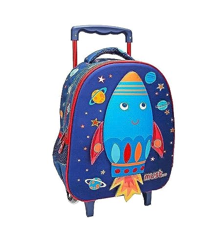MUST - شنطة بعجلات بتصميم صاروخ فضاء ثلاثي الابعاد مصنوعة من ايفا مع سوستتين ماست متعدد الألوان M