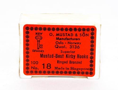 Generic - خطافات الصيد الأكثر حدة وقوة كيربتي من موستاد، 100 قطعة، خطافات دائرية للمياه المالحة والباس للصيد، مصنوعة من الستيل عالي الكربون، برونزي، موديل 375-3136BR-18/المقاس: 18