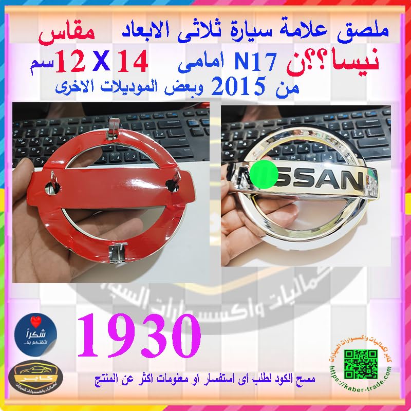 Generic - ملصق ستيكر علامة شعار سيارة ثلاثى الابعاد بديل اساسى لشارة السيارة ( علامة متوافقة نيسا؟ N17 امامى بداية من 2015 وبعض الموديلات الاخرى ، مقاس 14*12 سم ، كود : 1930) - كابرمصر 2020