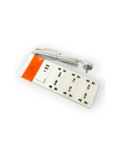 generic - وصلة كهربائية مع 6 مقابس طاقة (2 منفذ USB ومنفذ USB نوع سي) 2500 واط 1.5 متر من ناما