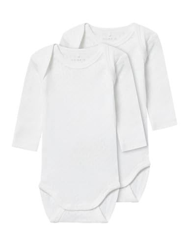 name it - سالوبيت بكباسين بأكمام طويلة للأولاد من نيم ات، لون أبيض ناصع (عبوة من قطعتين)