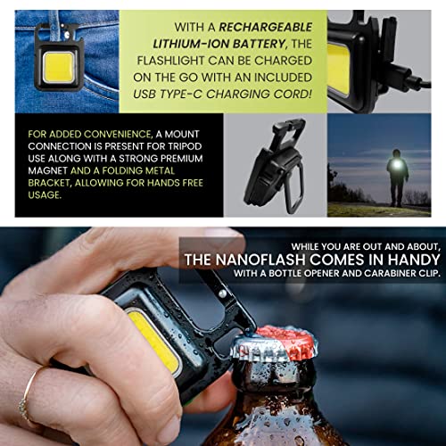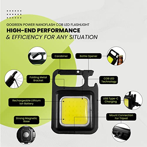 PerfPower Go Green - مصباح يدوي صغير قابل لإعادة الشحن مع فتاحة زجاجات من نانوفلاش