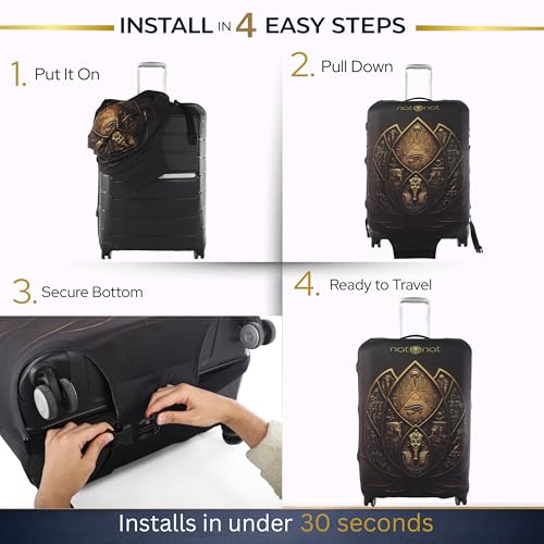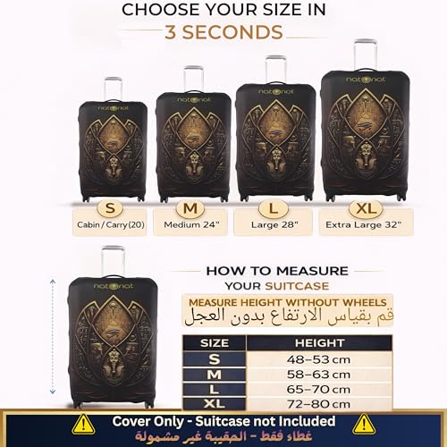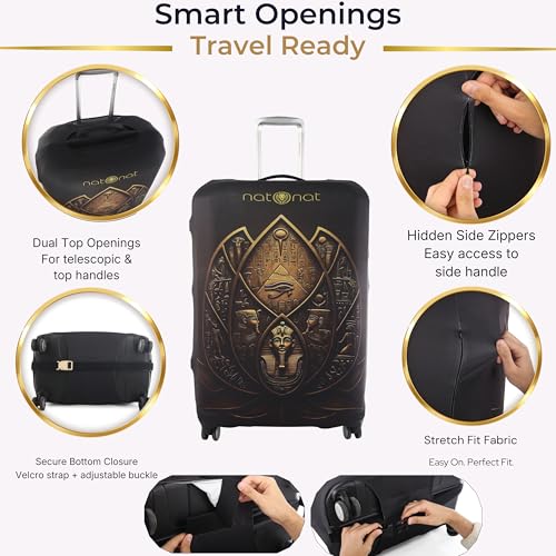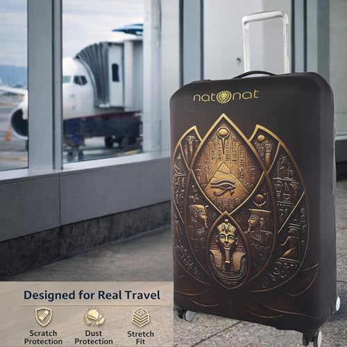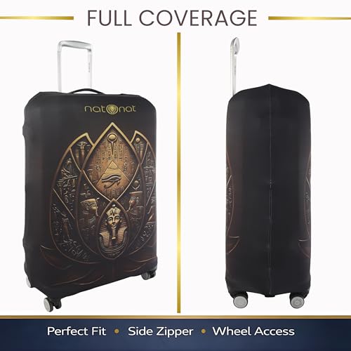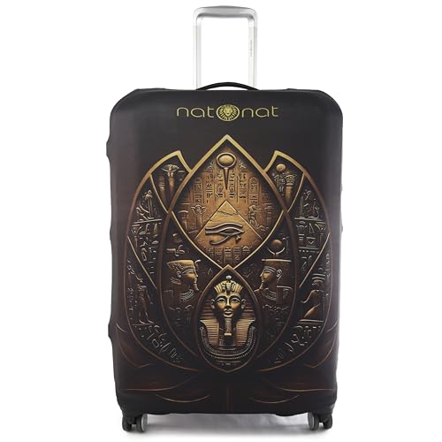 natOnat - غطاء واقي لحقائب السفر من ناتونات - غطاء حقيبة سفر - قابل للتمدد وقابل للغسل من السباندكس والبوليستر - يحمي من الاوساخ والخدوش - تصميم اللوتس المصري - يناسب ارتفاع 72-81 سم (مقاس XL)