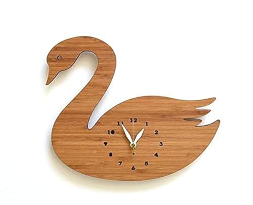 - ساعة حائط بتصميم بطة من الخشب الطبيعي - 30 سم