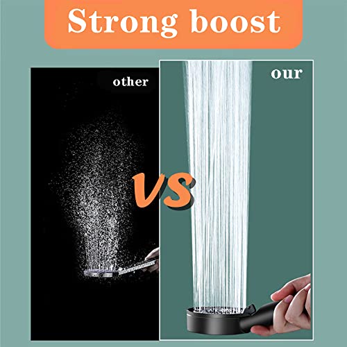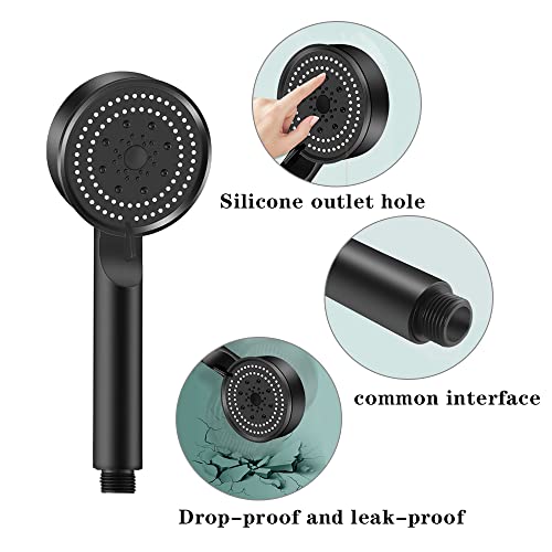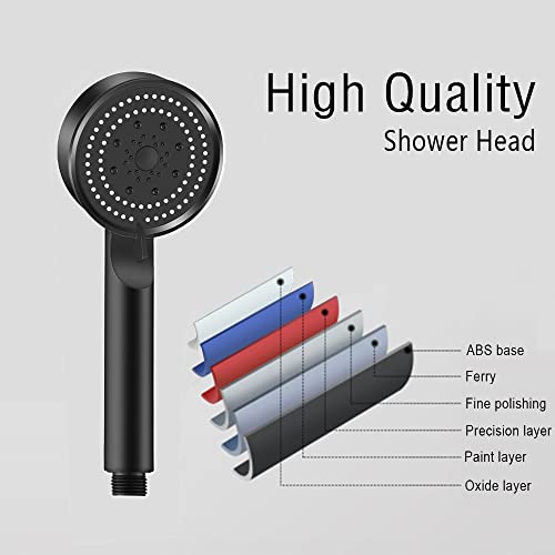 NAUXIU - رأس دش عالي الضغط، دش يدوي، رأس دش موفر للماء، 5 أوضاع، رأس دش قابل للتعديل، زر إيقاف واحد (أسود)