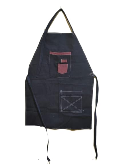 Generic - مريلة جينز مبطنة طويلة كحلى مطعم بجلد منقوش متعدده الجيوب ، مقاس موحد للكبار من الجنسين
