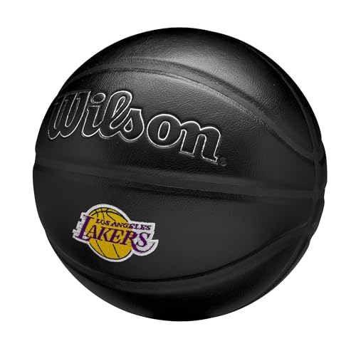 - كرة سلة بتصميم فريق الرابطة الوطنية لكرة السلة لوس انجلوس ليكرز من ويلسون مقاس 7، 75 سم.