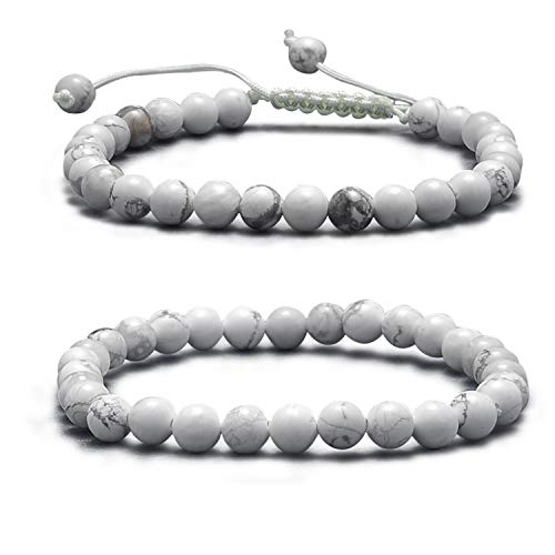 NCB - مجموعة من ازواج اساور من الاحجار الكريمة الطبيعية شبه الثمينة من ان سي بي مكونة من طبقتين من الخرز وقابلة للتعديل مناسبة لمجموعة الاصدقاء أو الازواج, 6mm, غير معروف
