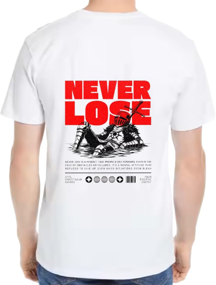 Generic - تيشيرت مطبوع بعبارة «Never Lose» بلون ابيض