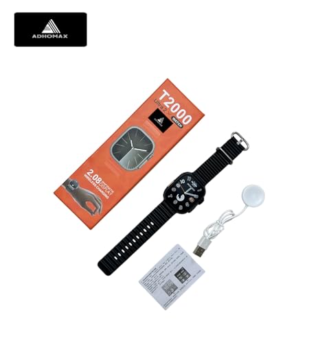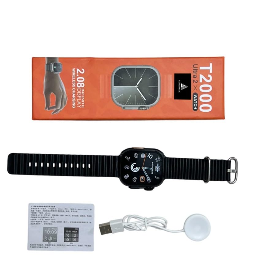 Generic - ساعة ذكية T2000 2025 الترا 2 أنيقة بشاشة لمس عالية الدقة HD 49 ملم وتقنية الاتصال قريب المدى ومكالمات بلوتوث وشحن لاسلكي ومتتبع اللياقة البدنية، متوافقة مع IOS وأندرويد، للرجال والنساء (لون أسود)