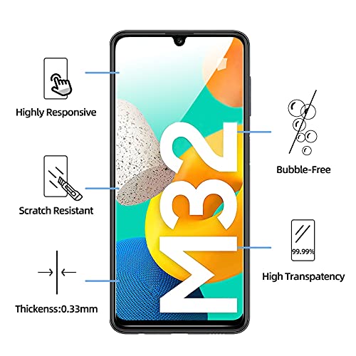 - صلابة فائقة - الزجاج المقوى لهاتف سامسونج جالاكسي M32 5G مصنوع من زجاج مقوى قوي بدرجة صلابة 9 (أقوى من السكين). يقاوم الخدوش والشقوق ويجعل هاتفك الذكي يبدو وكأنه جديد